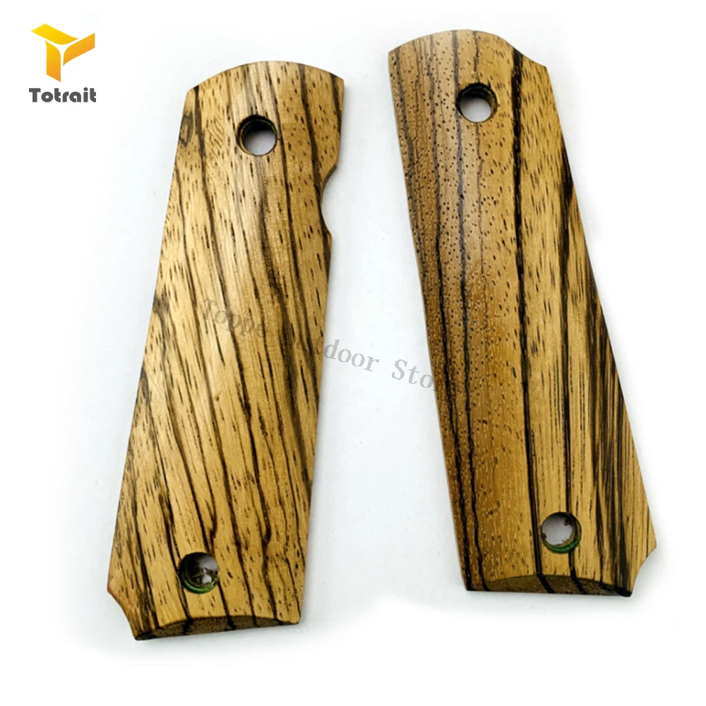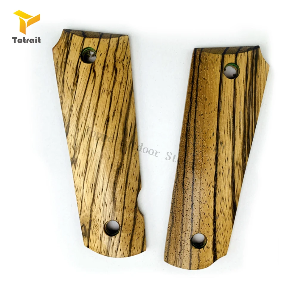 Best TOtrait 1 Pair 1911 Grips Natural zebra wood Handle Grips Patch Custom Grips CNC Handle Grips Full Size 1911 Accessories.